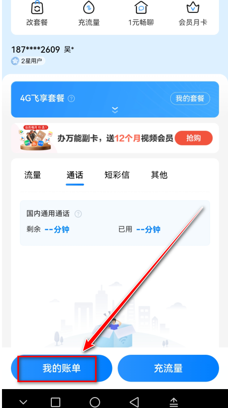 然后点击我的账单即可查看话费余额。