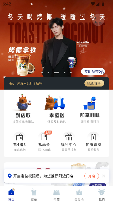 首页展示当前热销饮品、限时优惠及个性化推荐,支持按品类快速浏览。