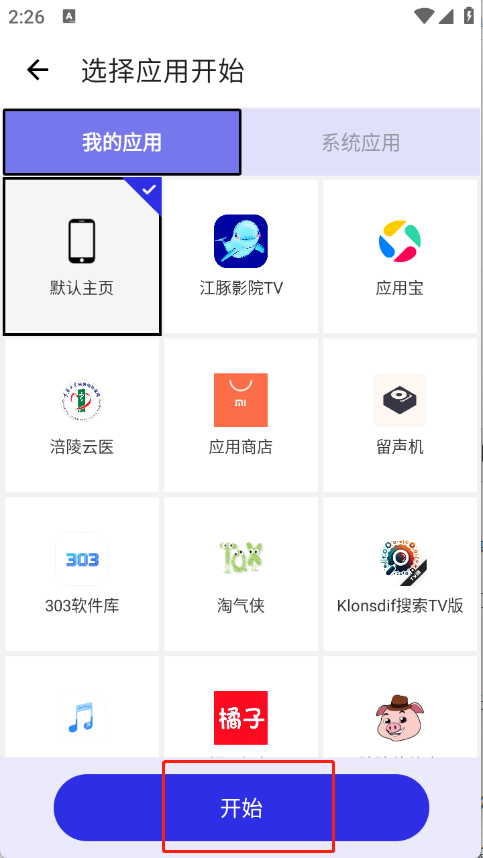 6、选择好应用以后点击开始。