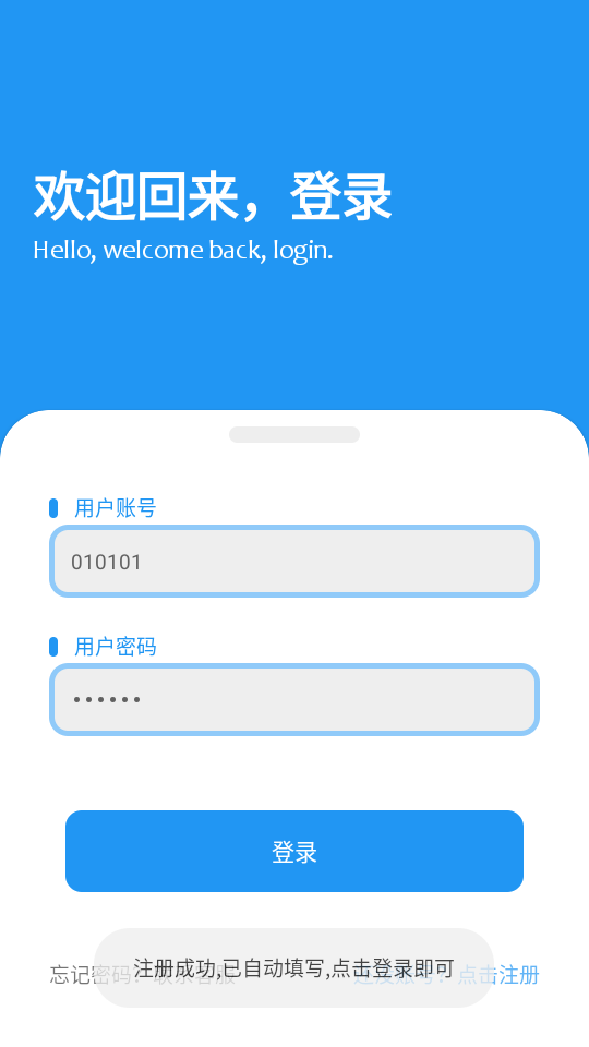 3、可以任意输入账号密码注册,注册成功之后可以直接登录使用。