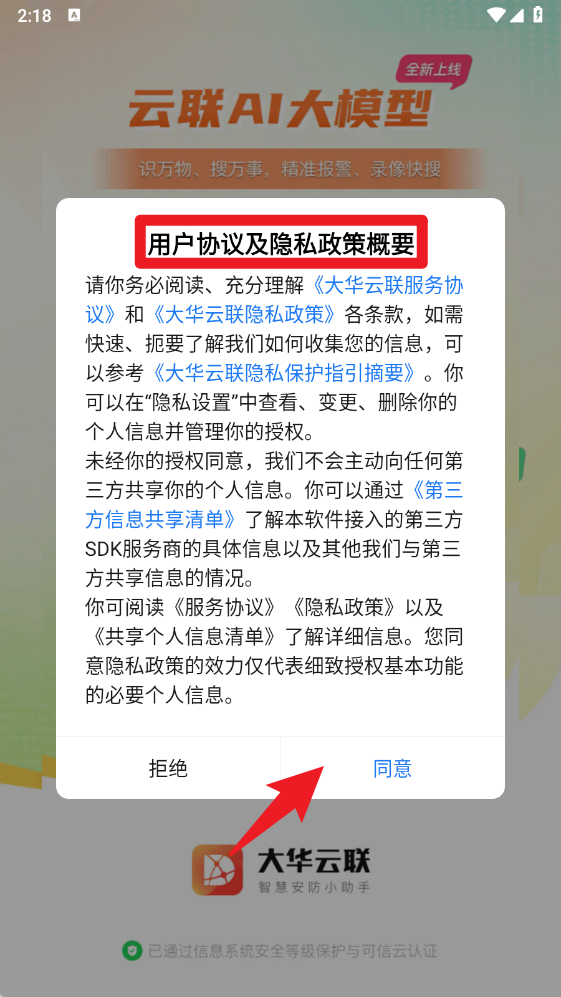 1、首次打开应用,将弹出《用户协议及隐私政策概要》提示,请仔细阅读后点击“同意”进入应用。