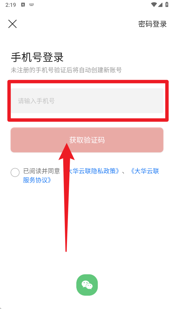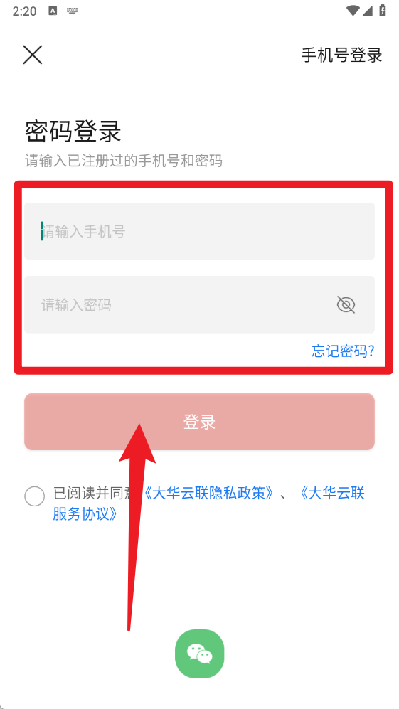 3、若已有账号,可切换至【密码登录】页,输入手机号与密码后点击“登录”。