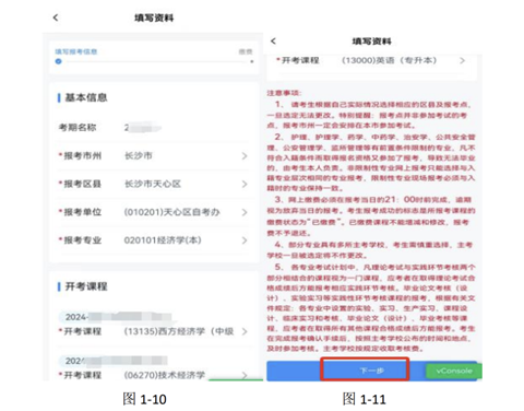 第四步课程报考并确认点击上图1-8报考界面下方的“新增理论课报考”图标,进入图1-9界面,阅读完阅读须知,并勾选“承诺书我已阅读,并同意所有条款!”再点击“下一步”按钮,进入图1-10界面,选择报考市州、报考区县、报考单位、报考专业及开考课程(报考课程),再点击“下一步”按钮,进入图1-12界面,点击“确认”按钮,锁定本次报考名额。
