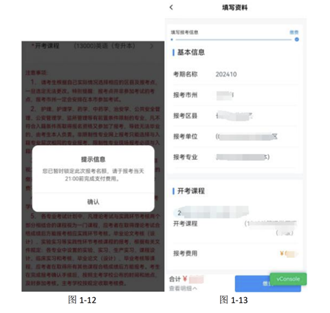 第五步缴纳考试费上图1-13界面,点击“缴费”按钮,进入图1-14界面,请核实报考课程后点击“确认”按钮,进入图1-15界面,点击“确认支付”按钮,进入图1-16界面,点击“立即支付”按钮,输入支付密码完成支付后,进入图1-17界面,显示缴费状态为“支付成功”即可点击“关闭”按钮完成支付流程。注:课程确认后不可更换报考课程,缴费后不支持退款。