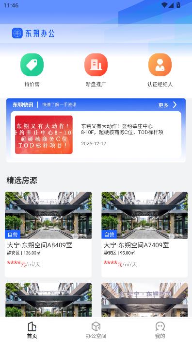 东朔办公app是款专注于写字楼运营管理的软件,提供大量房源信息,打通写字楼从招商、租赁、管理到企业服务的全求成服务,系统模块化设计,支持按需配置,有需要的用户可以下载试试!