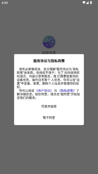 阅读服务协议,点击同意并接受。