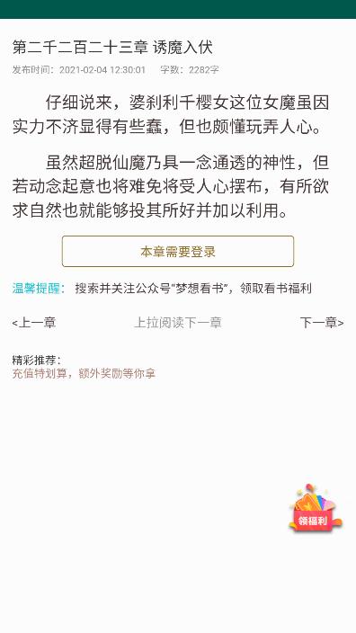 可以看到想要阅读完整的章节内容需要先进行登录注册。