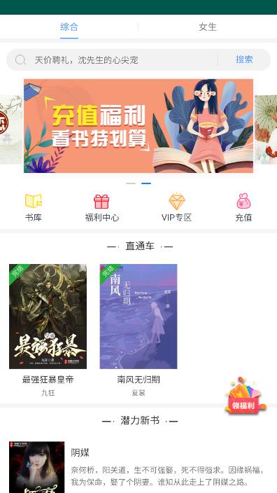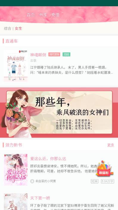 如果是女生的话可以进入女生频道,选择喜欢的小说阅读。