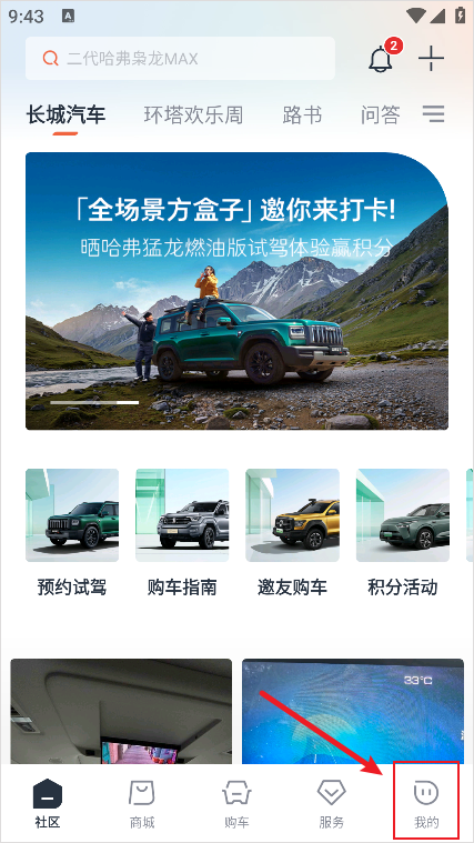 1、进入长城汽车App后,点击下方我的进入个人主页。