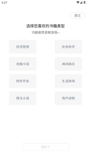 进入后系统会根据选择推荐类似的书籍。