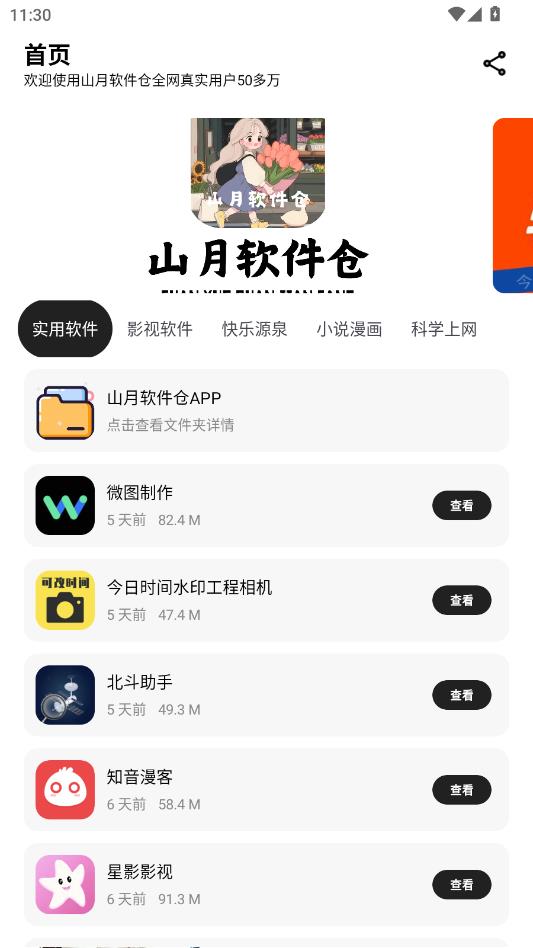 山月软件仓app是款汇聚了许多免费应用资源的软件,其中包括小说、影视、实用工具等多种类型,都是最新版本内容,提供直接高效的下载渠道,后续还会不断上新更多应用资源,全面满足用户需求。