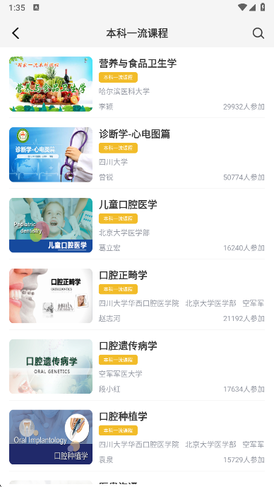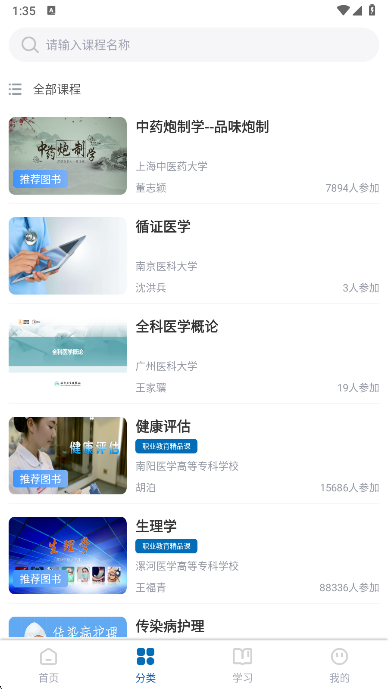 2、选择你想要学习的课程可以查看课程列表