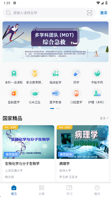 1、在本站下载安装人卫慕课app打开,进入到首页可以获取到基础课程服务