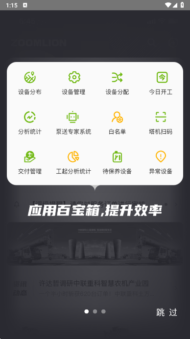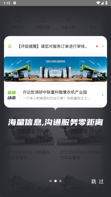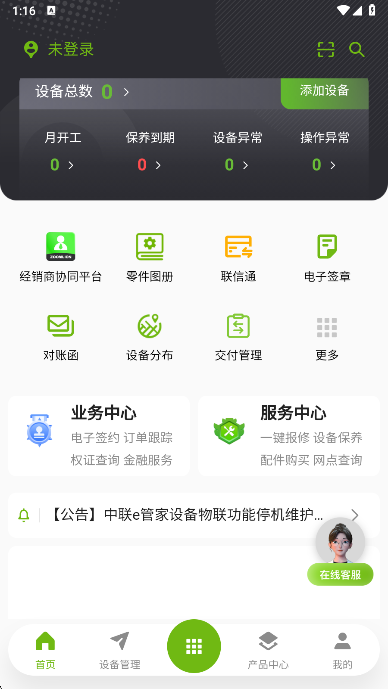 中联e管家app是一款高端智能设备管理软件,创新性的为工程机械用户提供智能、便捷的设备、经营管理,具体功能包含:设备综合管理、项目设备管理、配件/主机销售咨询、设备维修指南、设备电子围栏、行业资讯等功能。