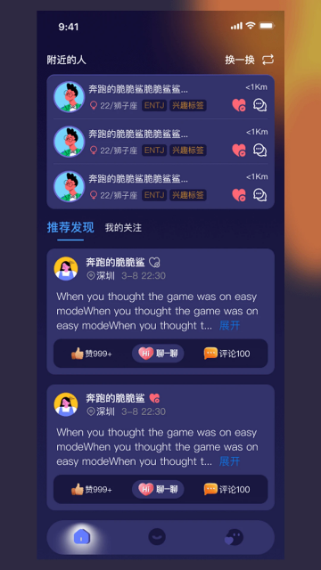 1、基于地理位置推送附近岛屿与活动,距离可精确到百米,线上先聊线下即见,打破城市孤岛效应,让同好不再隔着屏幕相望。