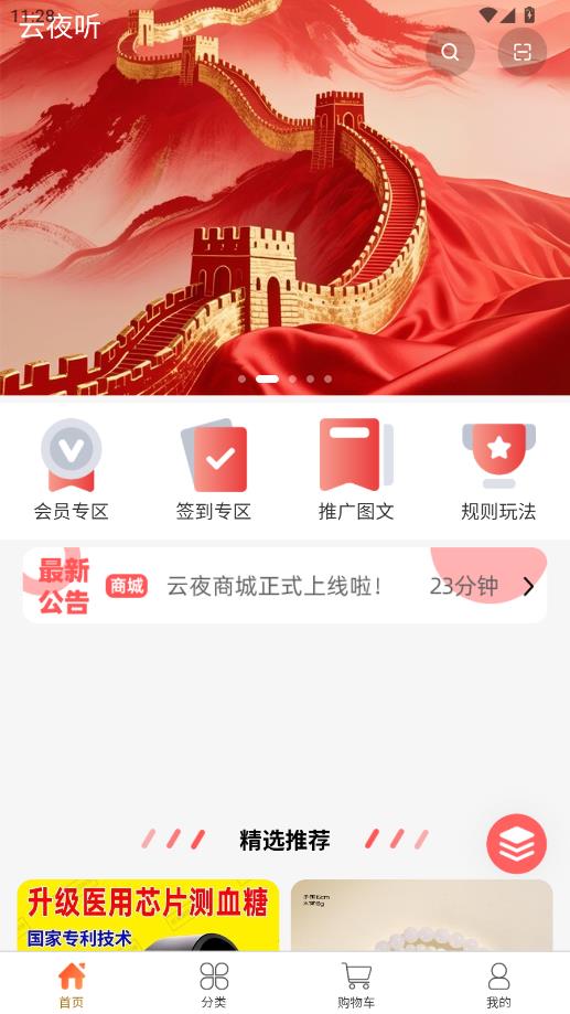 云夜听app是款由厂家直供的商品购物平台,去除了中间环节,保障高性价比和品质,其种类丰富多样,全面涵盖多个消费领域,可以先参与活动领取优惠券然后再下单,可以省下一大笔钱哦!