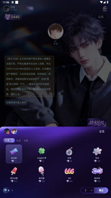女王的声阁app是款主打沉浸式AI语音互动体验的软件,提供了海量AI角色,包括高冷女王、温柔学姐、傲娇少女等多种人设,可以根据自己的喜好选择进入畅聊,并且提供剧情模式互动,让用户能够有更好的沉浸感。
