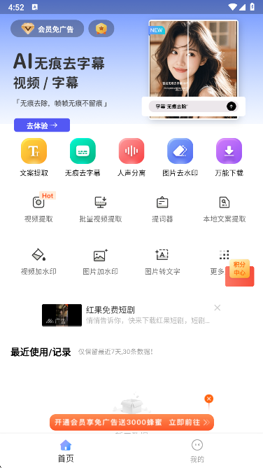 直播蜂app是一款主要服务短视频创作者的实用工具,不止可以帮你去除水印,还可以进行文字识别,文案提取,人声分离,图片转文字等操作,让你的内容创作更加得心应手,欢迎前来下载。
