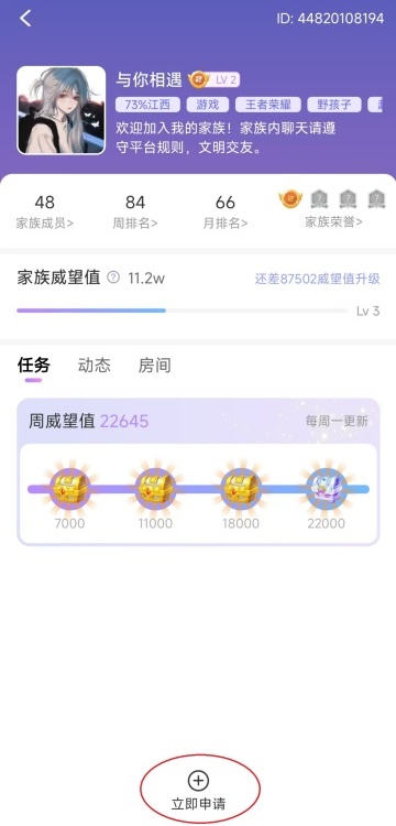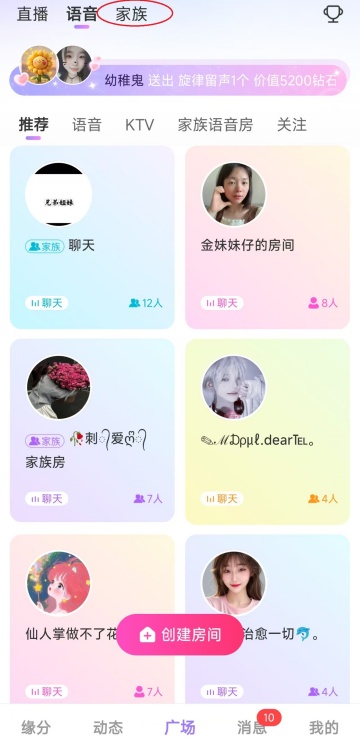 家族群聊:加入或创建兴趣家族,参与红包、PK、话题讨论等社群活动;