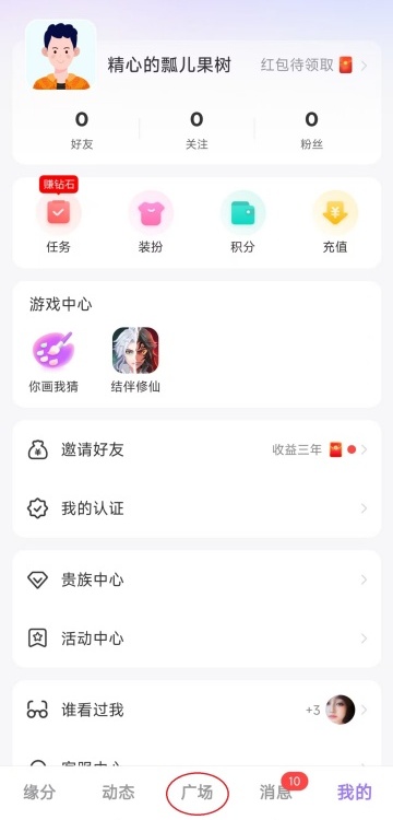 然后点击广场。