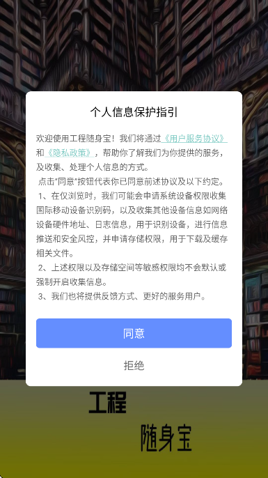 1、在本站下载安装工程随身宝app打开,同意工程随身宝app的用户协议