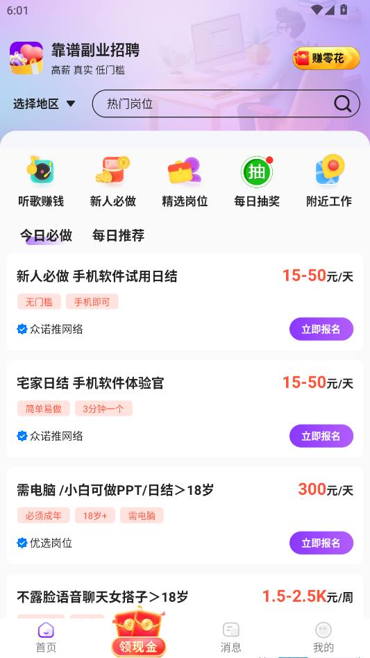 近百种线上线下兼职岗位,100%平台认证审核。让您每次都有不同的兼职体验。无论是补贴零花还是技能提升都会对您充满帮助。