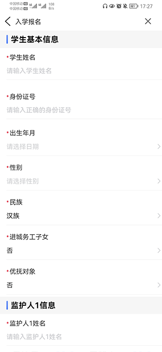 三、填写学生和监护人的基本信息以及上传报名需要的资料后,点击提交就可以了