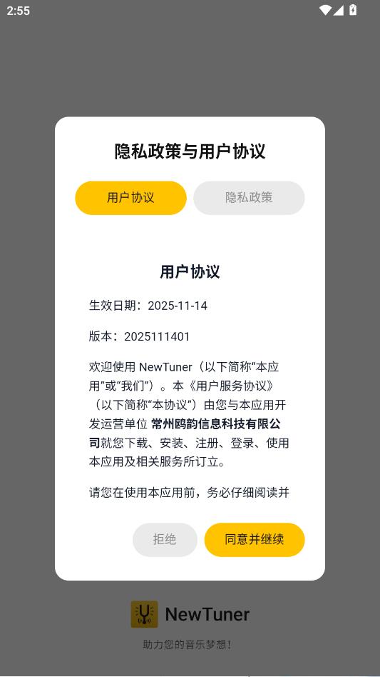 阅读隐私政策与用户协议,点击同意并继续。