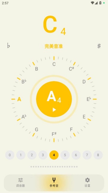 A4 基准频率校准: 支持各种情况下 A4 频率的设定,满足乐队合奏或古典乐器演奏的特殊需求。