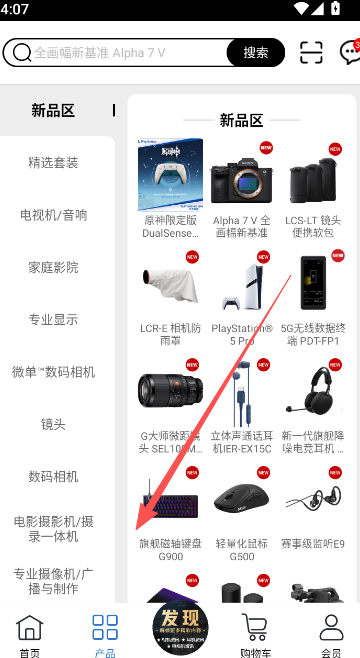 2、首页,展示索尼官方在售所有商品详细分类部分,有数码影像、便携音频、影音娱乐以及游戏配件等栏目,下方针对用户们所购买的销售量还有新品/热卖的详细划分。