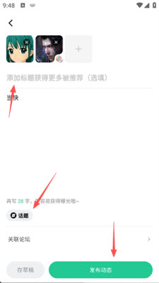 3.点击添加【话题】,输入要发布的内容,点击【发布动态】;