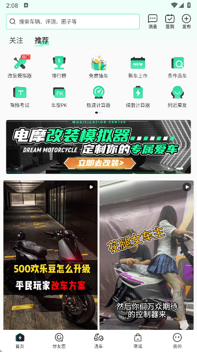电摩范app是电摩爱好者的专业综合平台,集 车型查询、测评、改装交流、装备购买、社交互动 于一体,让用户轻松获取电摩资讯、记录骑行生活并结识同行好友。无论是购车、改装还是骑行社交,都能提供便捷、高效的支持,是每位电摩发烧友的必备工具。