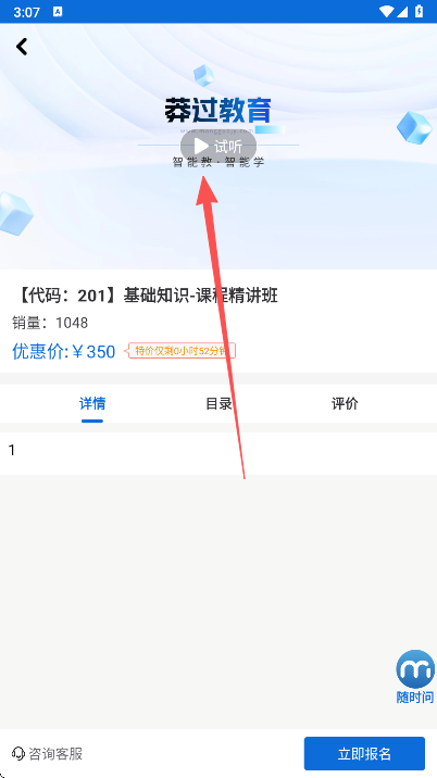 4、点击试听,觉得不错的话可以立即报名