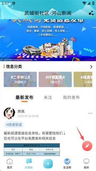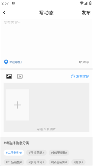 3、选择信息分类,输入内容点击发布