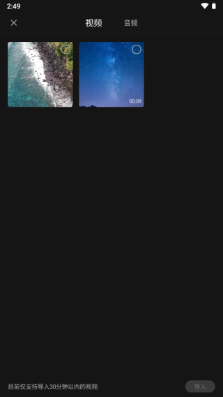 2、从手机本地文件中选择一个视频或音频,导入完成;