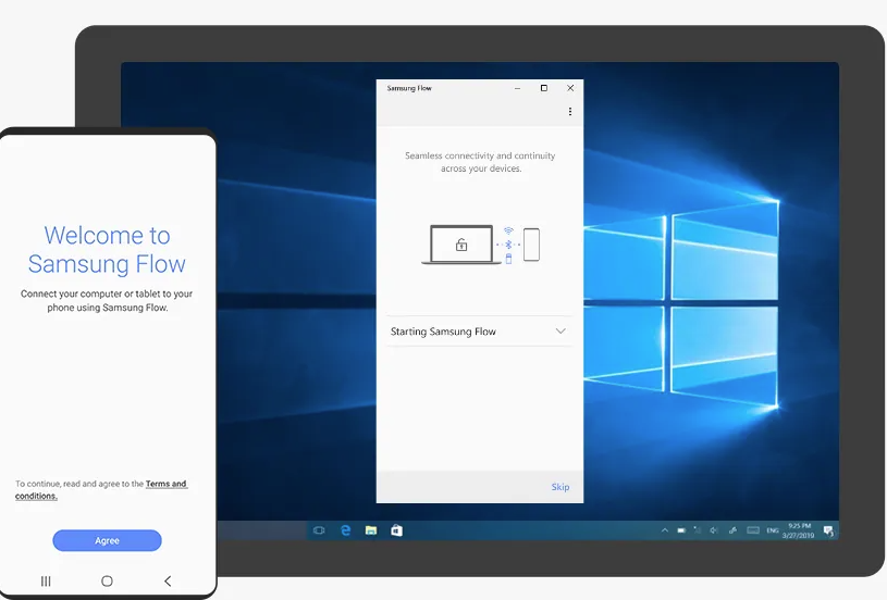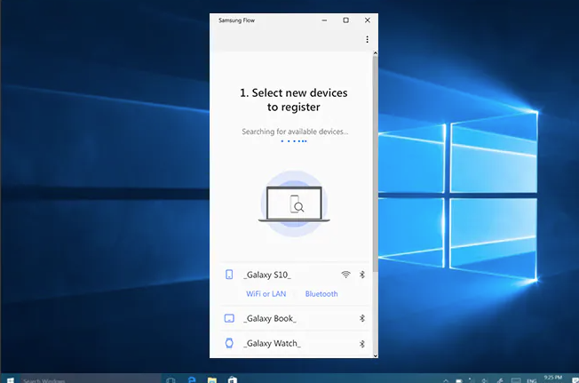 1.在您的手机和智能平板或电脑上打开Samsung Flow应用程序