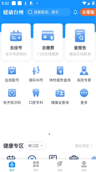 健康台州app是由台州卫健委专为本地推出的一个医疗健康服务平台,不止汇聚了众多医疗机构,还可以让用户线上预约挂号,查看个人健康档案,享受更为便捷的医疗服务,有需要的快来下载吧。