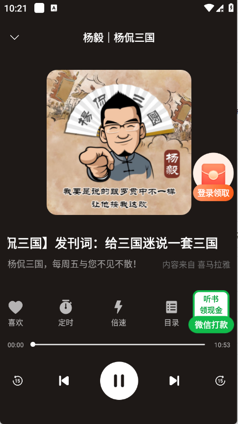 【场景电台,精准适配】专属定制电台频道,随心切换使用。通勤路上伴你解乏,居家放松给你慰藉,运动时刻为你鼓劲,不同场景精准匹配,总有优质故事相伴左右,享受惬意时光的同时攒下小惊喜。