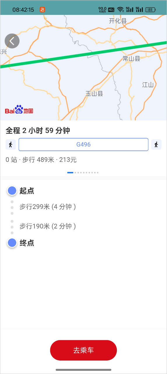 3、确定好出行计划后,点击进入【去乘车】页面。