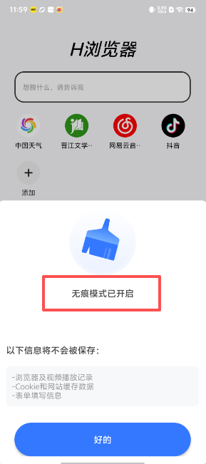 【H浏览器怎么开启无痕模式】