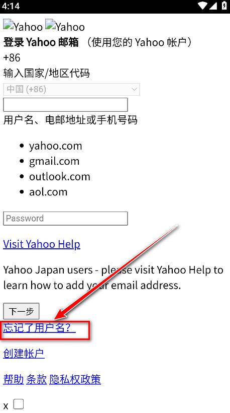 1.打开雅虎邮箱,自定义选择并点击使用Yahoo账户登录或者谷歌账户登录,小编点击的是前者。