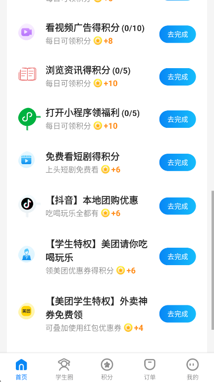 3、通过完成任务也能够获取积分