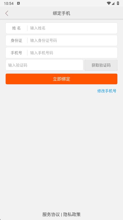 2、然后输入姓名相关信息,绑定手机