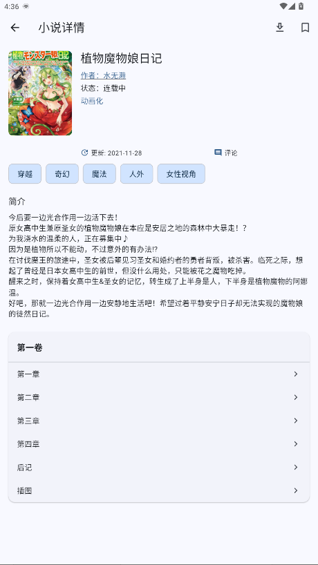 4、选择感兴趣的小说进入到详情页面