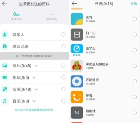 支持联系人、通话记录、短信、照片、视频、音频、应用(APK)、文档、日历、备忘录等核心数据传输