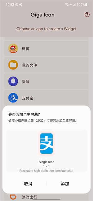 2、Giga Icon 便会在桌面生成一个默认为 1×1 尺寸,你还可以随意调整大小的应用「大图标」;