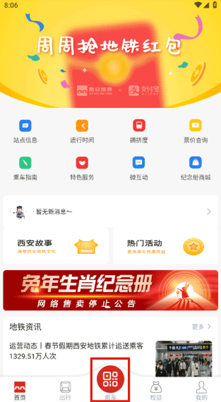 西安地铁app是由西安市轨道交通集团有限公司专为本地推出的手机地铁出行平台,不止可以帮你查询线路,还可以扫码乘车,线上支付,获取地铁运营公告也比较及时,让你的出行过程更加高效,便捷。