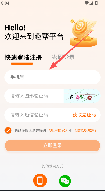 1、双击启动软件,使用手机号码短信验证码的方式快速进入。