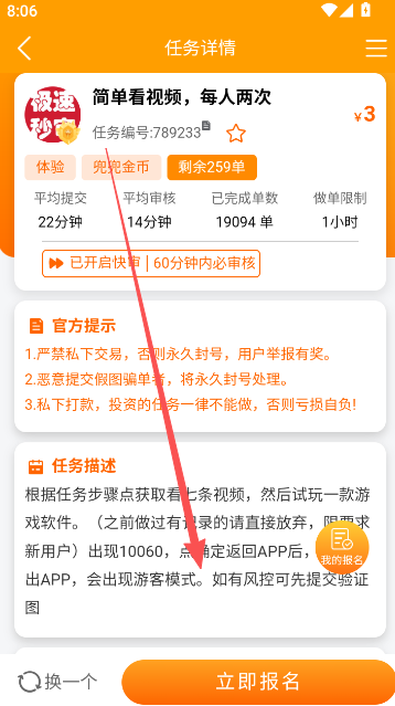 4、选择立即报名开始操作。