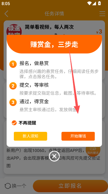 3、简单查看赚赏金的基本流程之后,点击开始赚钱。